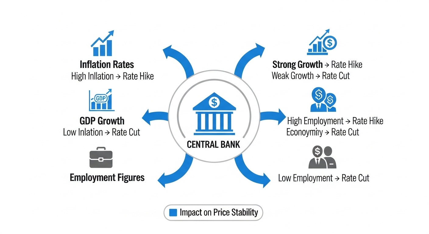 금리 인하를 결정하는 주요 요인은 크게 세 가지로 볼 수 있습니다.