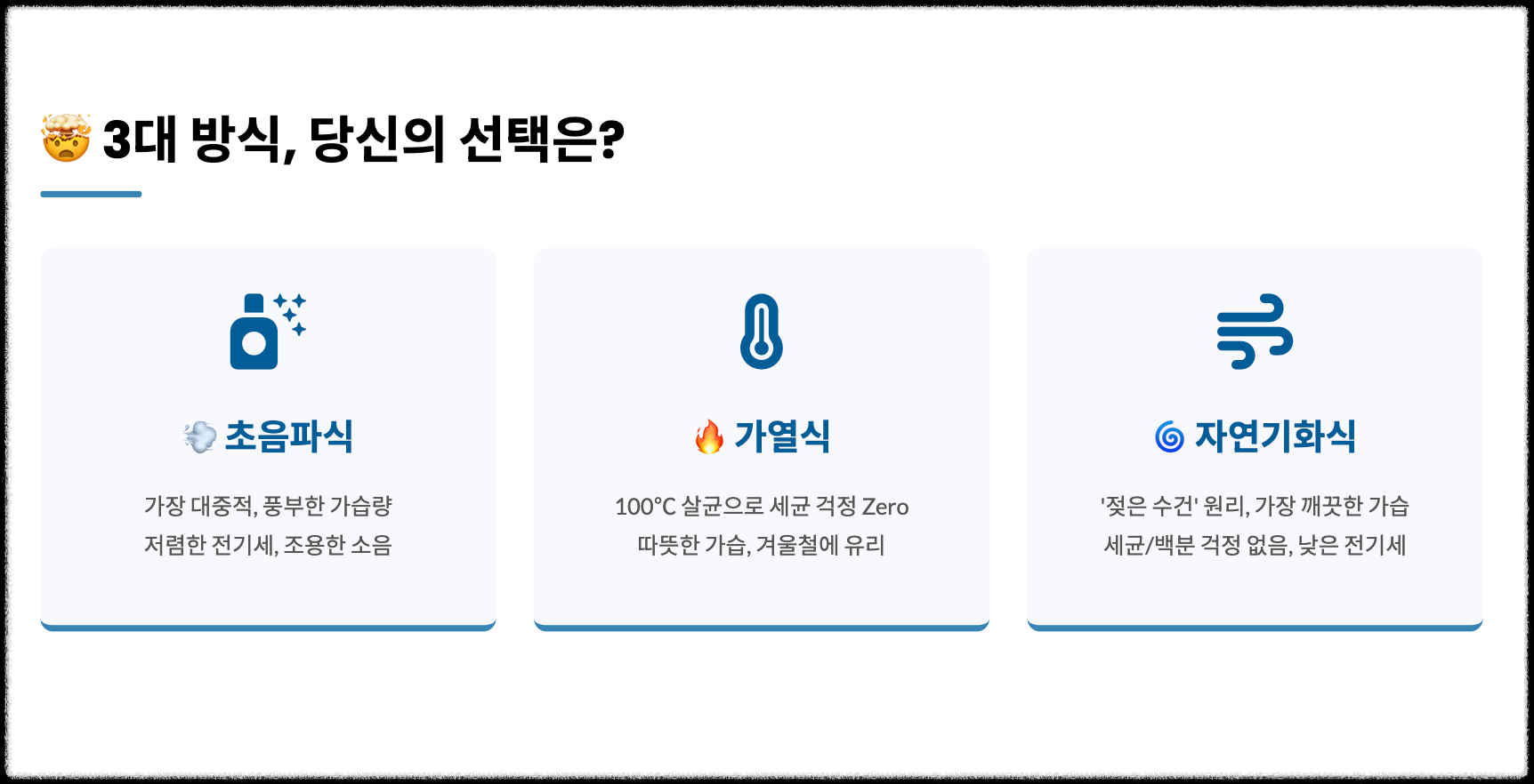 2. 🤯 가장 중요! 가습기 3대 방식 완벽 비교