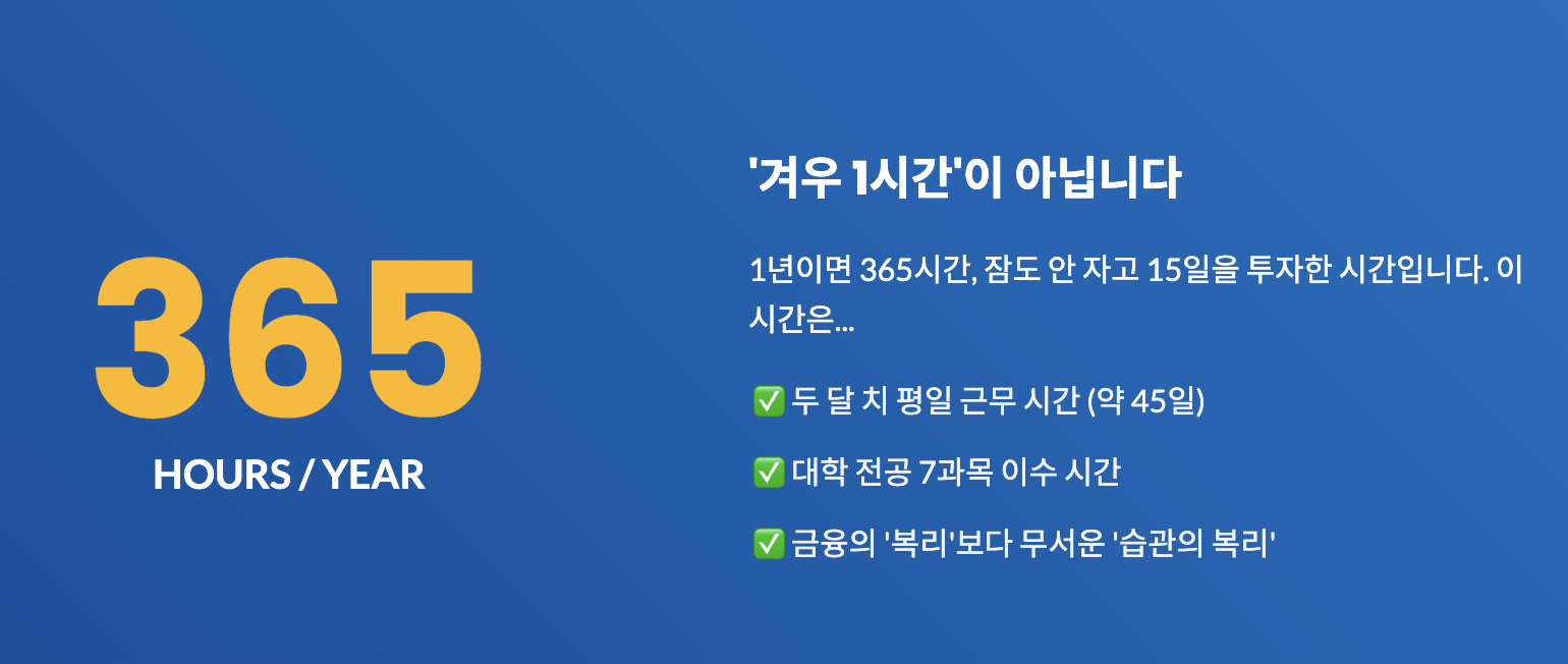 1. ⏰ '1시간'의 진짜 가치 (숫자로 보는 365시간)