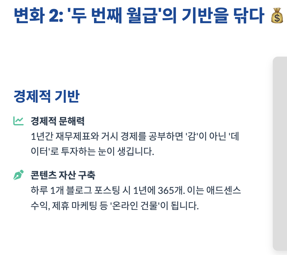 - 3. 💰 변화 2: '두 번째 월급'의 기반을 닦는다 (경제)