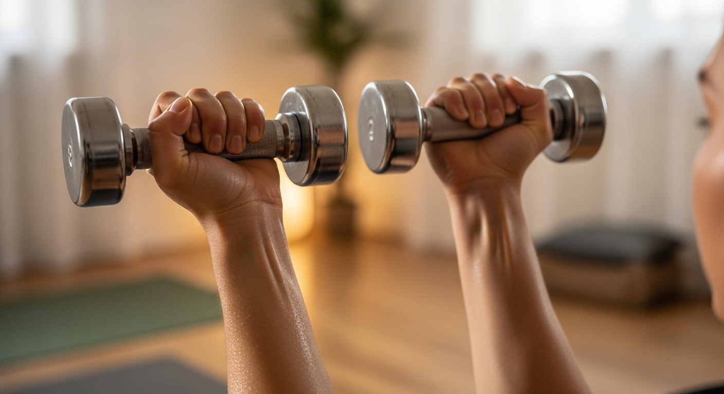 상체 근육은 옷 태를 살려주고 일상생활에서 안정감을 줍니다. 간단한 덤벨(생수병도 OK)을 활용하면 더욱 효과적입니다.