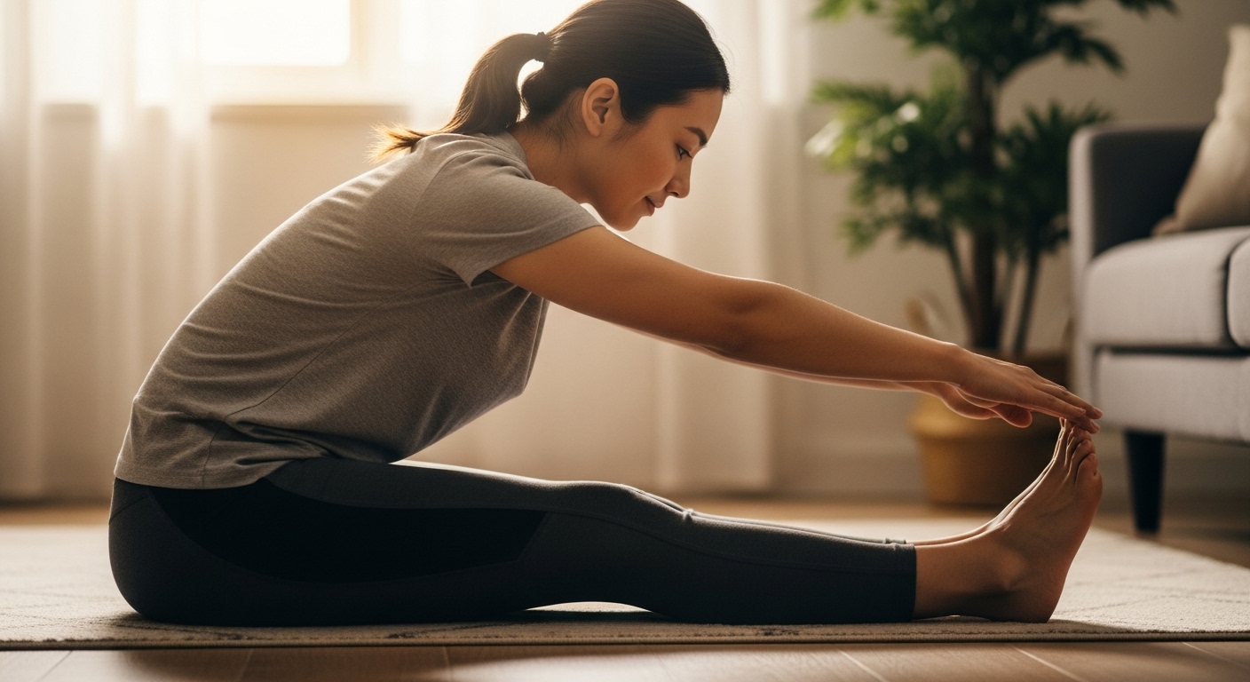 - 햄스트링 스트레칭: 다리를 쭉 펴고 앉아 발끝을 잡으려 합니다.