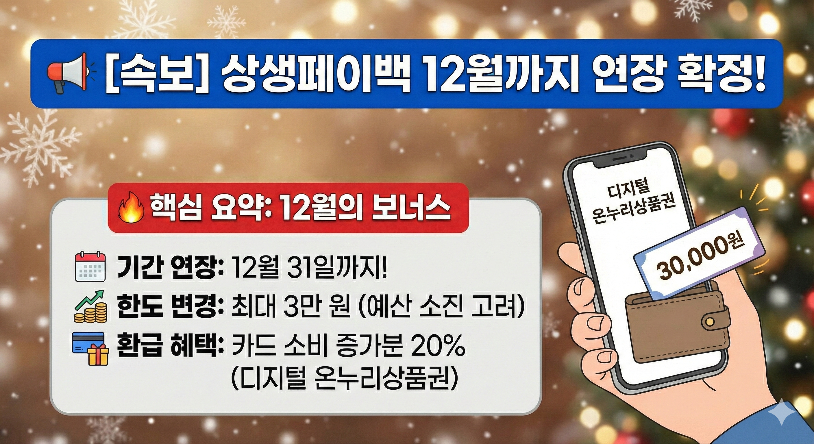 2025년 12월 5일, 정말 반가운 소식이 들려왔습니다. 11월로 끝난 줄 알았던 '상생페이백(상생소비장려금)' 사업이 12월까지 긴급 연장되었다는 사실!