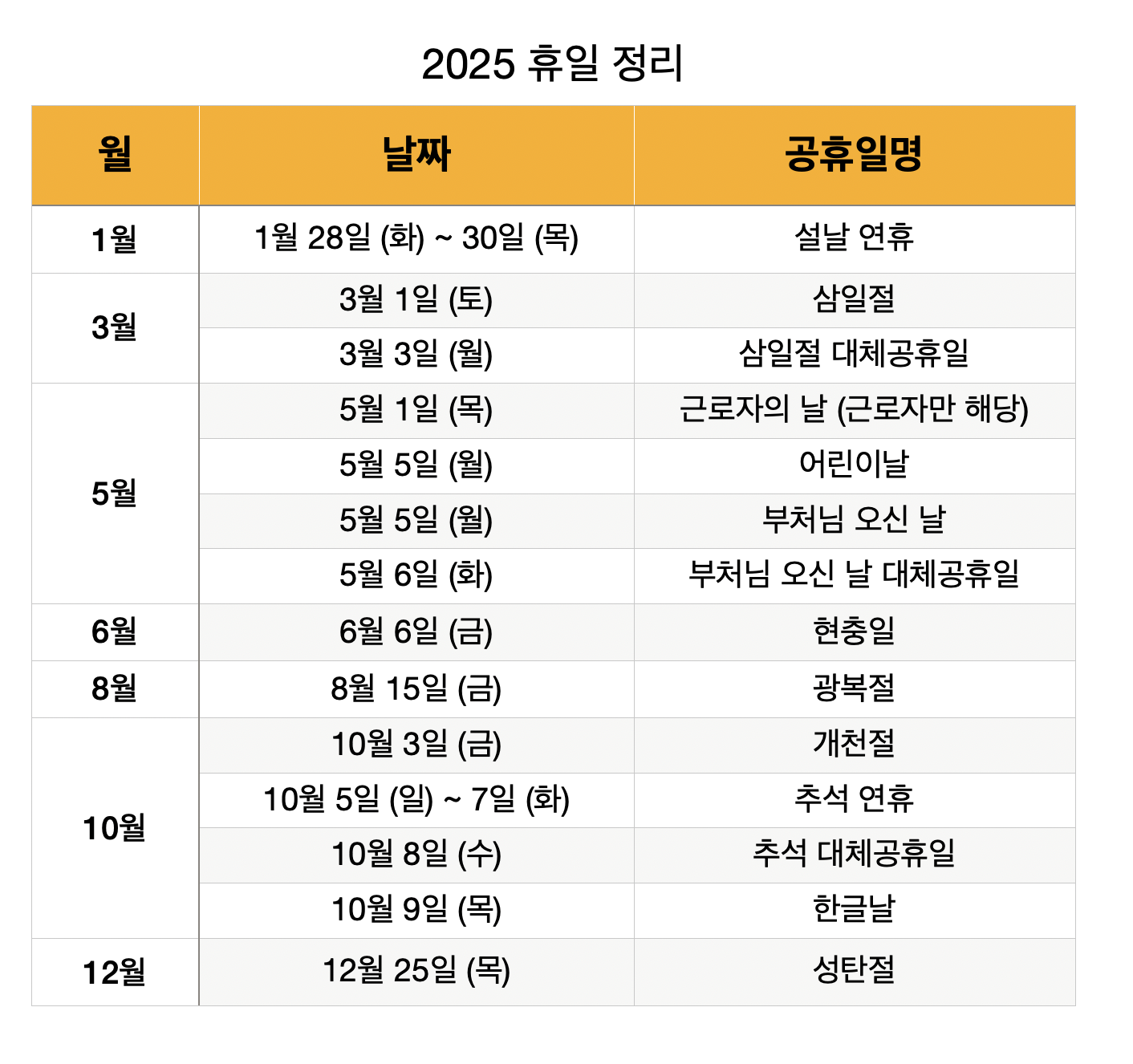 2025년에는 삼일절(3월 3일)과 부처님오신날(5월 6일), 추석(10월 8일)이 대체공휴일로 지정됩니다.