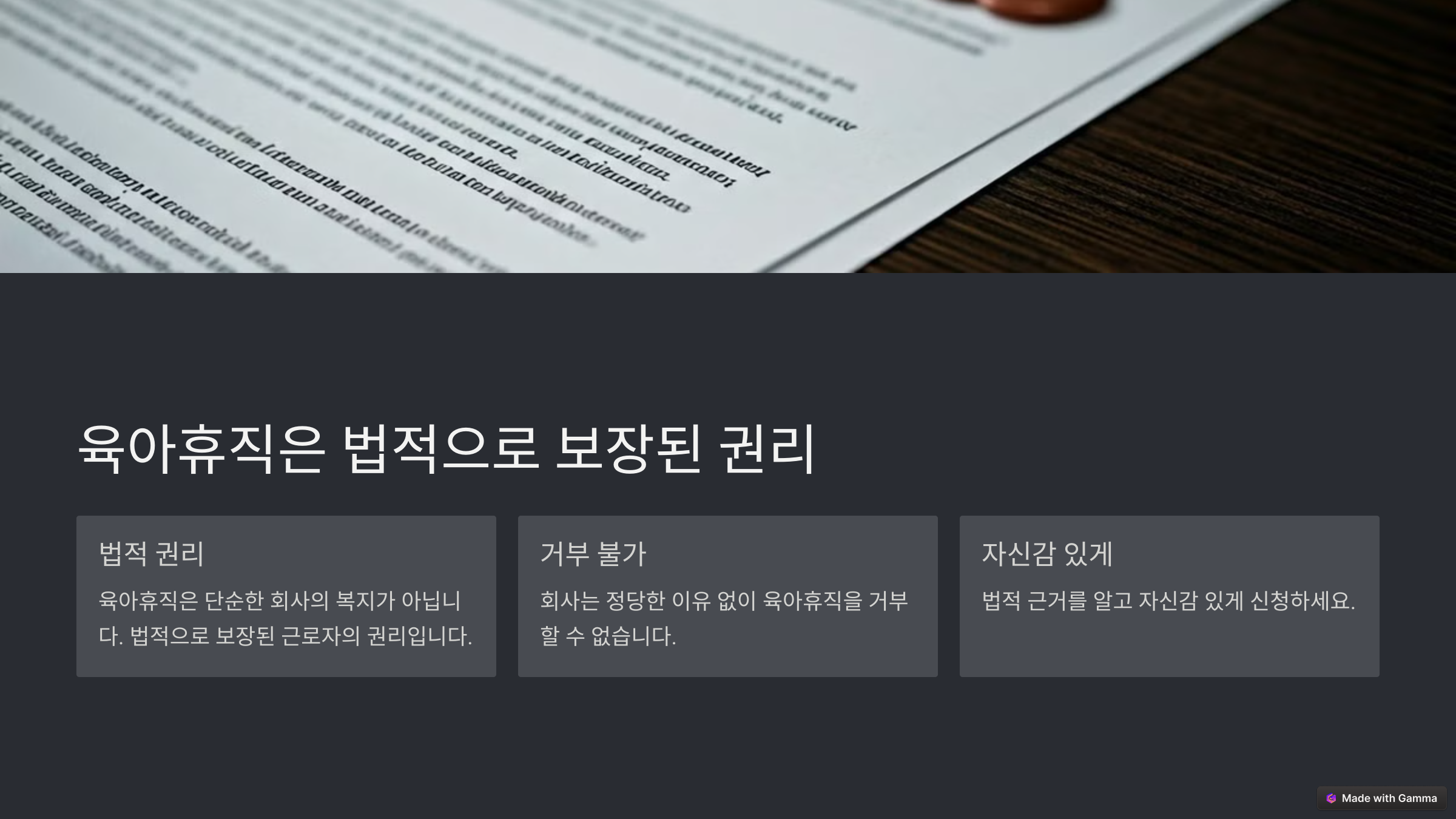 - 📄 공식 서면 요청: 회사가 거부할 경우, 육아휴직 신청 거부 사유를 문서로 요청